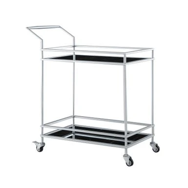 - – Our modern functional cart provides large storage space. Top shelf is perfect for displaying treats, drinks and an array of cocktail glasses. Bottom glass shelf can fit bottles of fine wine or liquor or can be used as stemware storage. The tray-like design will keep your offerings from slipping off