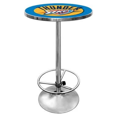 - Chrome base with foot rest and adjustable levelers: up to 42 inches high