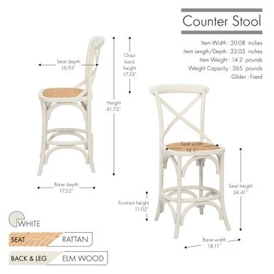 - [SPACE-SAVING PIECES] with design touches such as airy cross backs and graceful leg arches, these rattan wicker counter stools manage to stay sleek without taking up too much floor space