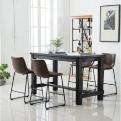Riley Mid-Century 5-Piece Indoor Walnut Metal Bar Set With 4 Seats – Brown
