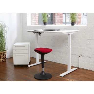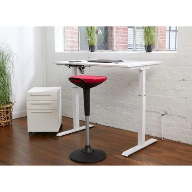 This ergonomic stool and Sit-Stand Chair is designed to work well with standing desks or can be utilized as a standard low height stool. The stool moves effortlessly from a sitting to standing position with the push of a button. The easy-clean Premium polyester fabric ensures years of use while maintaining the look of new for years to come.