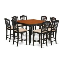3pc Round Black Pub Table With Two 29″ Wood Stool Square Legs