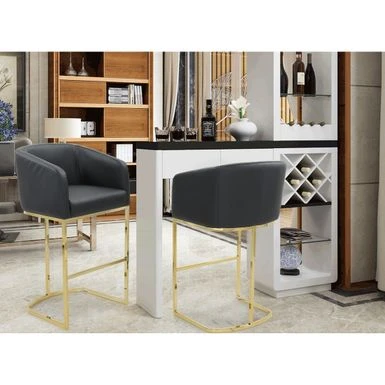 Upgrade your home decor with the Silver Orchid Bonner Upholstered Stool, a sleek and stylish seating solution that’s perfect for any modern or contemporary space. Featuring a foam-filled bucket seat and a gold-finished metal sled base with an integrated footrest, this stool is available in two sizes and five chic PU leather upholstery colors to suit your style.