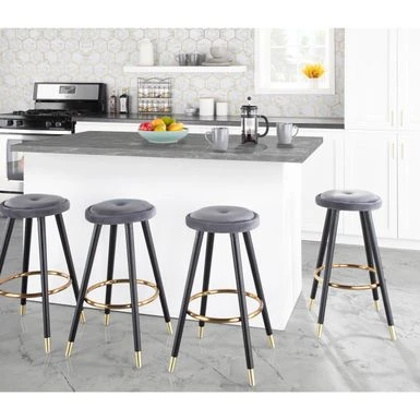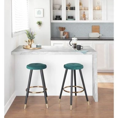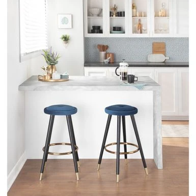 Sleek and Glam with Art Deco influences, this chic counter stool will look amazing with almost any dcor. A beautiful combination of black wood, velvet, and gold accents, the Cavalier Counter Stool by Silver Orchid is a must-have. With a backless design, this will tuck easily under any counter or table. Available in a variety of velvet upholstery options, choose the one that fits your space the best.