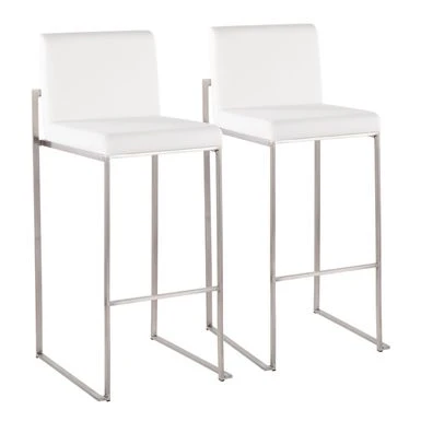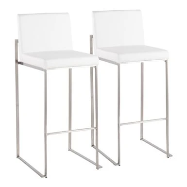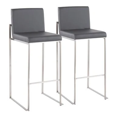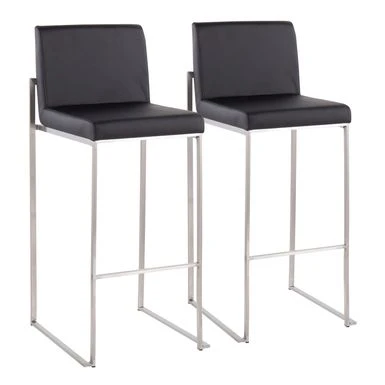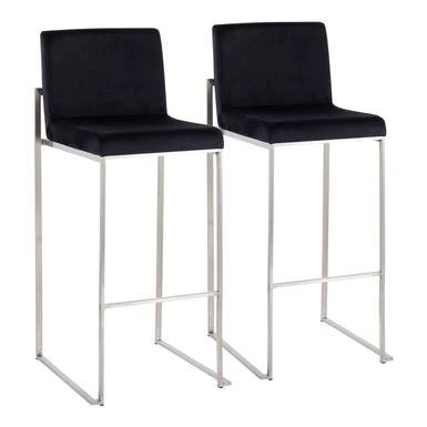 Modern elegance at its finest, the Forrest High Back Bar Stool features an extra-wide (and extra comfortable) upholstered seat, a high padded backrest, and a stylish metal frame. The perfect contemporary bar stool, the Forrest is available in a stainless steel, gold, or black metal frame and comes in a variety of sleek upholstery colors.