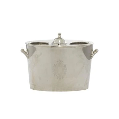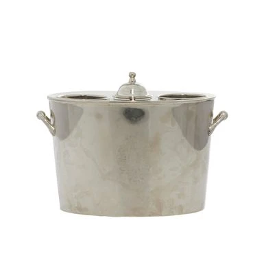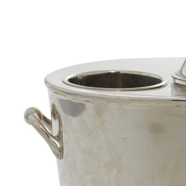 - Large metal wine bucket with handles features a polished silver finish