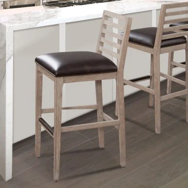 - White stool features nickel finished kickplate and the Driftwood finished stool features a bronze kickplate