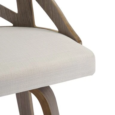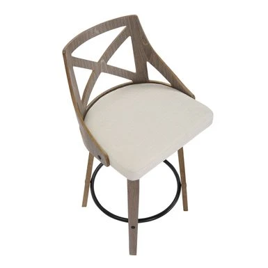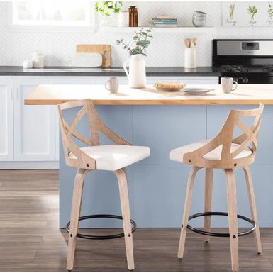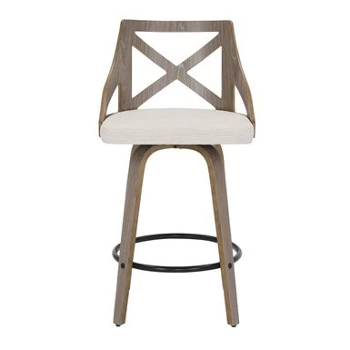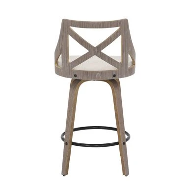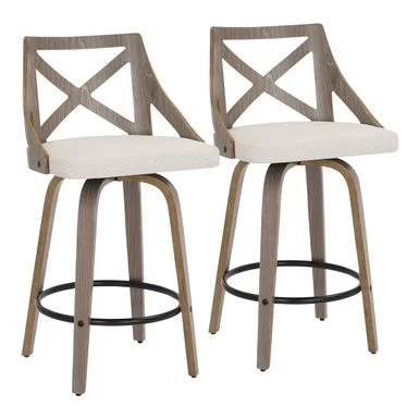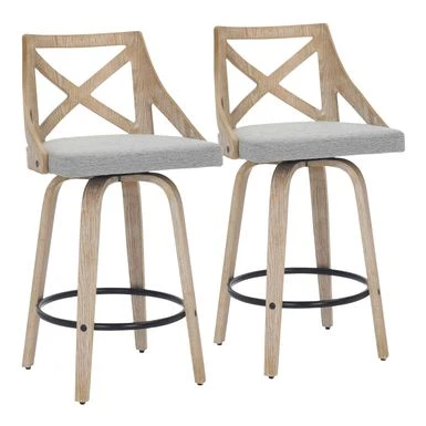 Spruce up your dining area with the Charlotte Counter Stool. With elegant styling, the backrest shows off an X-shaped accent. Featuring white washed or light grey wood, fabric upholstery, and a swivel seat, the Charlotte Counter Stool beautifully straddles the line between traditional and farmhouse styles.