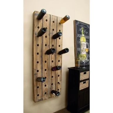 Durable, thick wood provides a sturdy display for your wine, and the pegboard holes store bottles with the labels facing outward so that guests can peruse your collection and make a selection. A rich brown finish makes this rack an attractive signature piece for your butler’s pantry or bar.