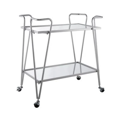 - Both top and lower shelf are mirrored and framed in silver metal tray