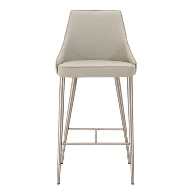 Elevate your dining experience with the comfortable and modern Upholstered Counter Height Stool. Made with a foam cushion and light gray leather upholstery, this stool provides the perfect balance of style and coziness. Chrome-finished legs ensure stability, while piping trim adds a polished touch. Ideal for any interior, whether it be a breakfast bar or counter-height dining table.