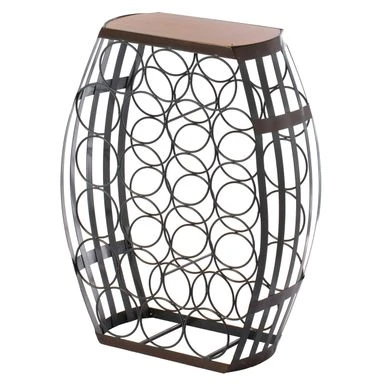 Complete the decor of your room with this vintage barrel wine holder. Composed out of durable wood and metal material. Vintage wood, metal designed base and barrel shape will create a decorative appeal to your room decor. Freestanding design keeps the wine stand steady and your wine collection secure. Surface area allows you to showcase trinkets, plants, books and to keep living room essentials handy. This barrel shaped wine holder invites vintage vibes to your home bar decor.