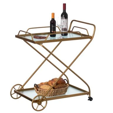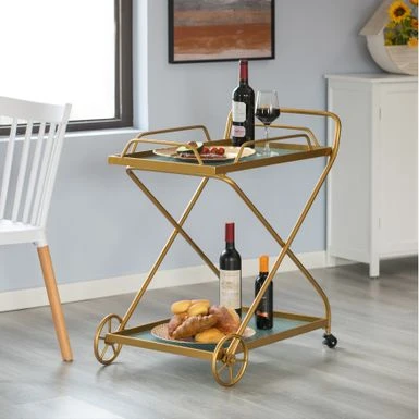 - ROLLING TROLLY: The four wheels make the wine cart portable, you can move the cart easily in any direction. Two of the casters have brakes attached, enabling users to park the bar cart safely