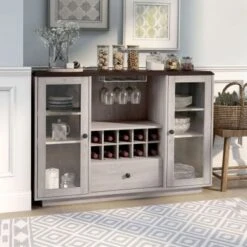 DH BASIC Traditional Coastal White 47-inch Glass-Door Wine Bar Cabinet By Denhour – Coastal White
