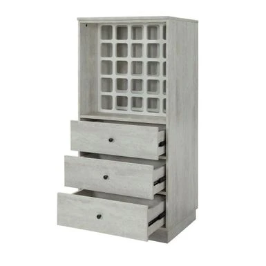 Simple yet versatile, the wine cabinet will ensure your home is always well-stocked with your favorite wines. This beautiful wine cabinet of drawers boasts of contemporary style, with wine storage and three bottom drawers. Simple yet versatile, the wine cabinet will ensure your home is always well-stocked with your favorite wines. This beautiful wine cabinet of drawers boasts of contemporary style, with wine storage and three bottom drawers. Crafted with walnut, the raw wood texture enhances this wine cabinet sleek style and the 3 drawers provide plenty of storage space for wine and more.