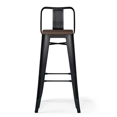 - Features curved back with vertical slat, solid wood seat and cross brace under seat, footrest provides extra stability. Protective rubber floor glides